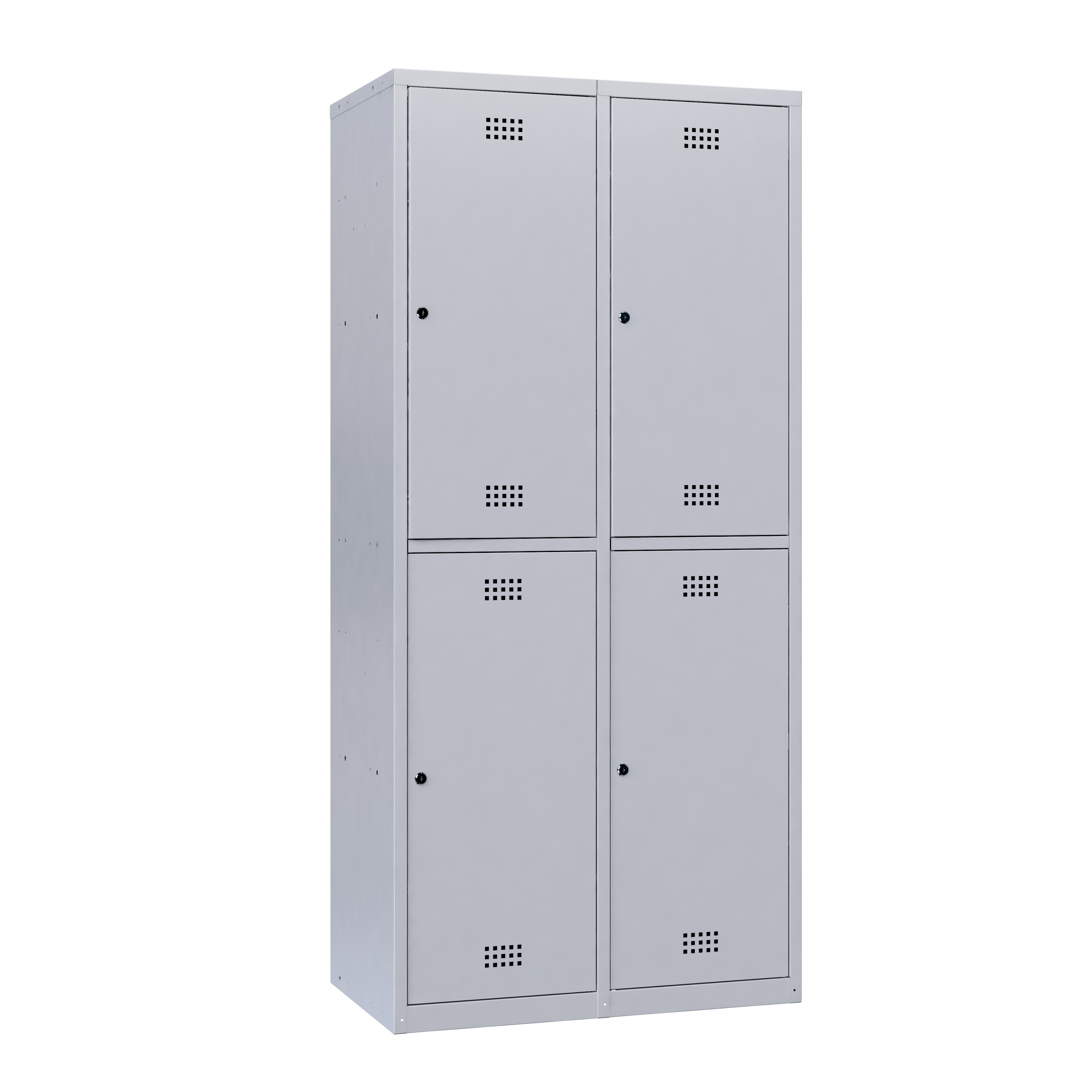 Секция представлена в виде двух отделений, расположенных вертикально одно над другим. Полка выдерживает нагрузку до 15 кг. Дверь оборудована врезным замком и петлей для навесного замка.