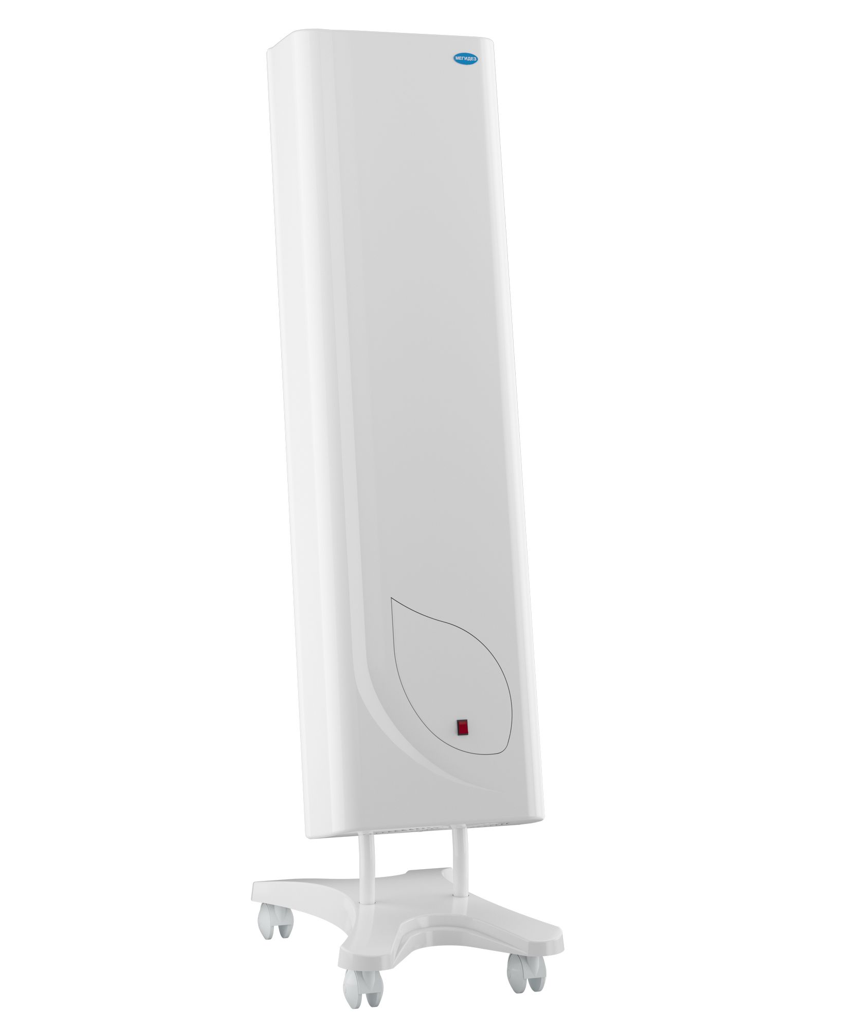 Безопасен при использовании в присутствии людей. Обеззараживание воздушного потока происходит в процессе его принудительной циркуляции через пластиковый корпус при помощи 2-х вентиляторов. Внутри корпуса размещены 2 лампы по 30 Вт - безозоновые бактерицидные низкого давления Ledvance (производство Россия). Ультрафиолетовое излучение ламп уничтожает болезнетворные микроорганизмы, и чистый обеззараженный воздух после циркуляции по лабиринту воздуховода возвращается в помещение. Для свободной циркуляции воздуха рециркуляторы рекомендуется размещать на стене или на передвижной платформе.