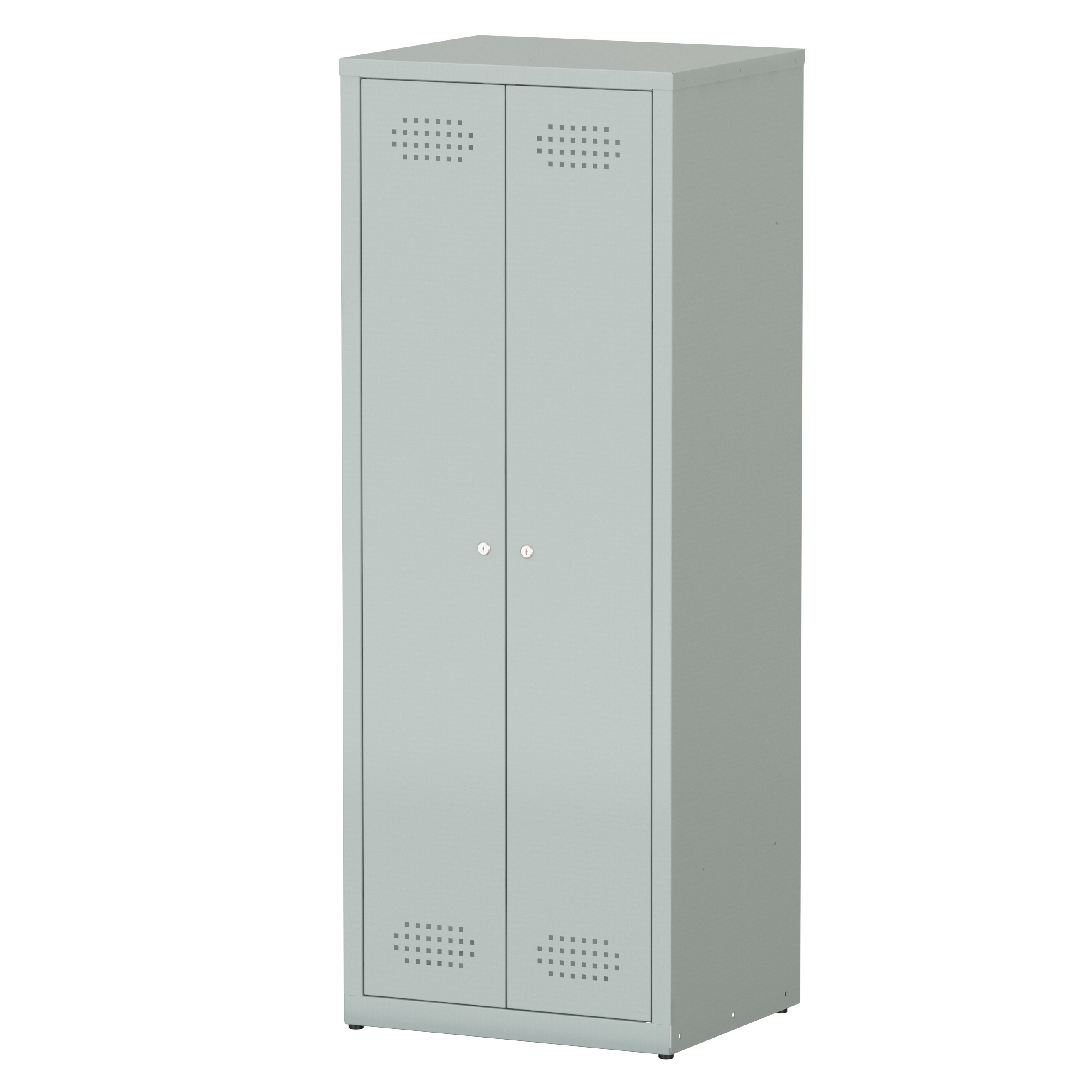 Материал изделия - металл. Толщина материала шкафа - 0,8 мм. Количество дверей - 2 шт. Наличие замка на каждой двери. Количество полок - 4 шт. Количество штанг - 2 шт. Количество крючков для одежды 4 шт. Наличие вентиляционных...