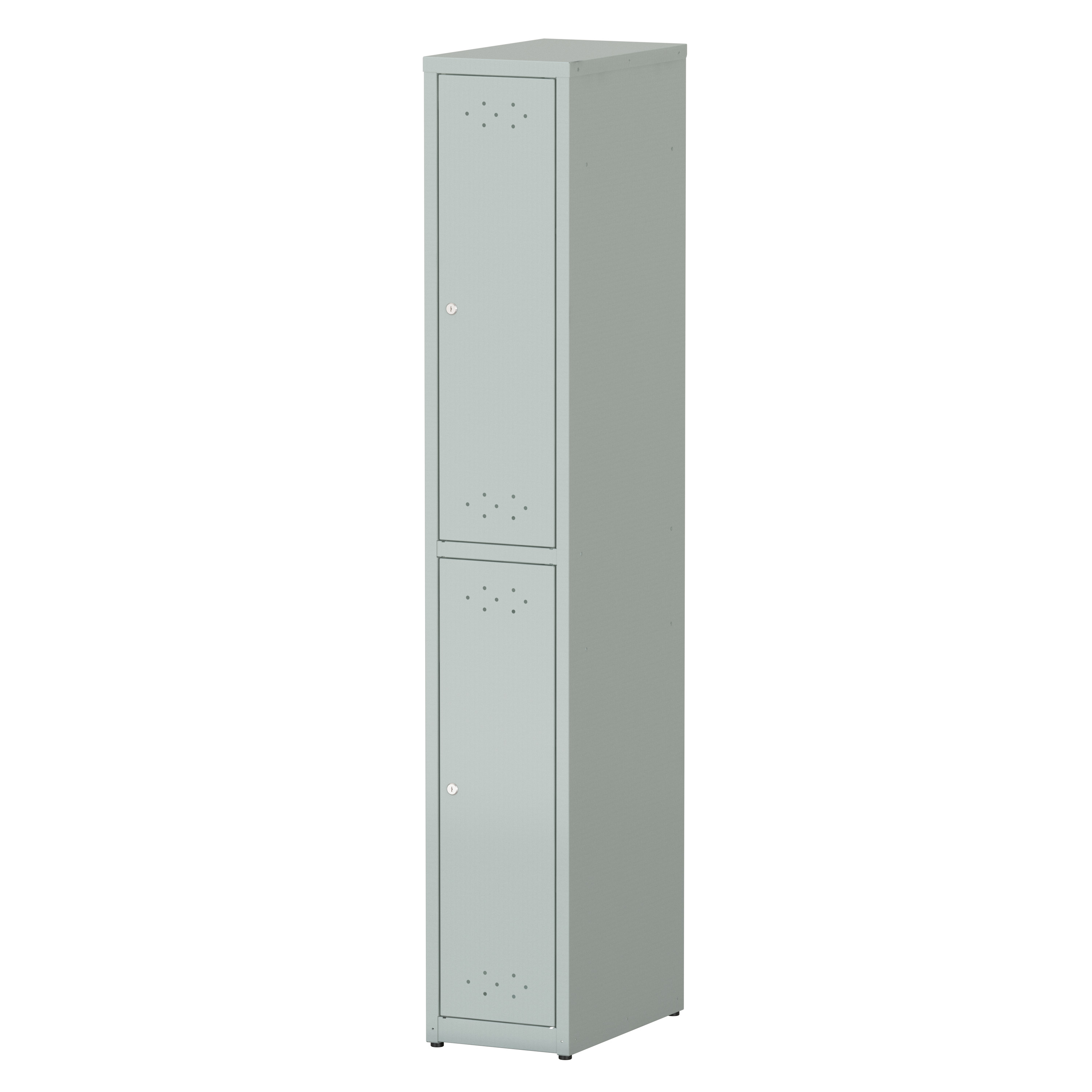Материал изделия - металл. Толщина материала шкафа 0,8 мм. Количество отделений - 2 шт. Количество дверей - 2 шт. Наличие замка на каждом отделении. Наличие полки в каждой секции. Наличие штанги в каждой секции. Наличие...