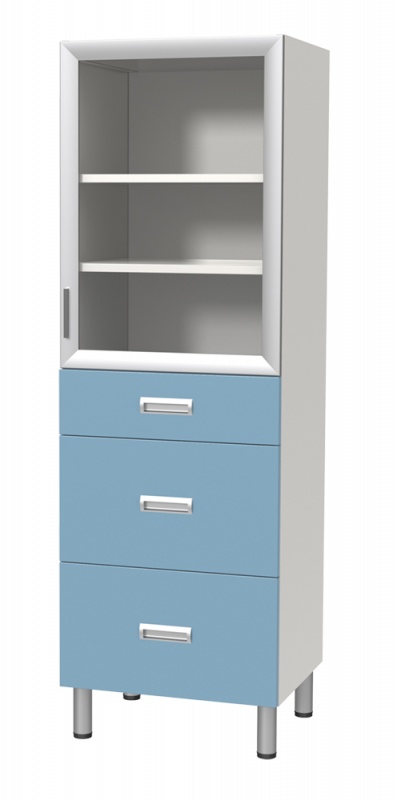 Покрытие всех металлических деталей шкафа выполнено экологически чистой эпоксидной полимерно-порошковой краской, устойчивой к ударам, сколам и регулярной обработке всеми видами медицинских моющих и дезинфицирующих растворов.