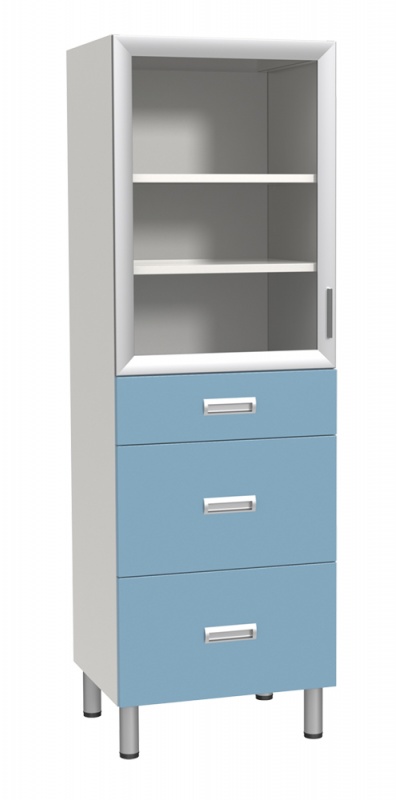 Покрытие всех металлических деталей шкафа выполнено экологически чистой эпоксидной полимерно-порошковой краской, устойчивой к ударам, сколам и регулярной обработке всеми видами медицинских моющих и дезинфицирующих растворов.