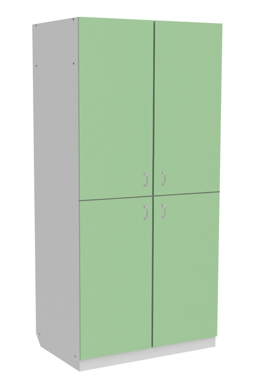 Шкаф четырехдверный, с верхней и нижней секцией. Каждая секция имеет по два отделения с полкой.