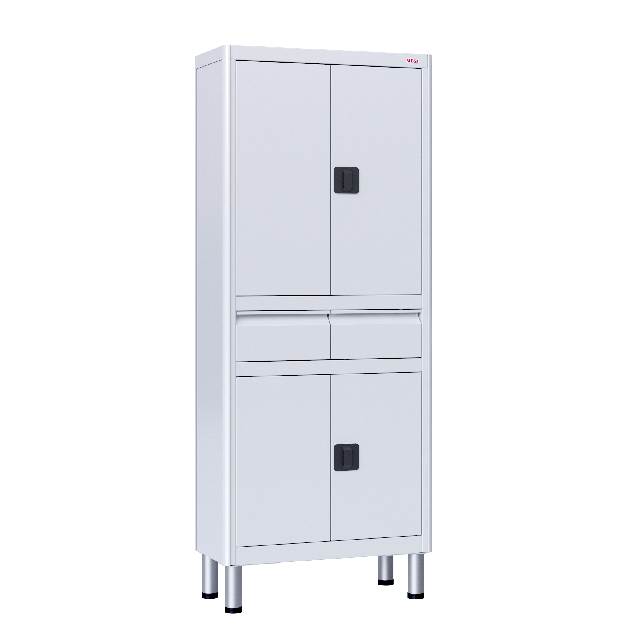 Наименование по Регистрационному удостоверению:Шкаф медицинский двухсекционный, двухстворчатый, из алюминиевого профиля и углеродистой стали, с двумя выдвижными ящиками, с металлическими полками и дверками в секциях ШМ-04-«МСК» (МСК-7644.01-11) по ТУ 9452-015-52962725-2003