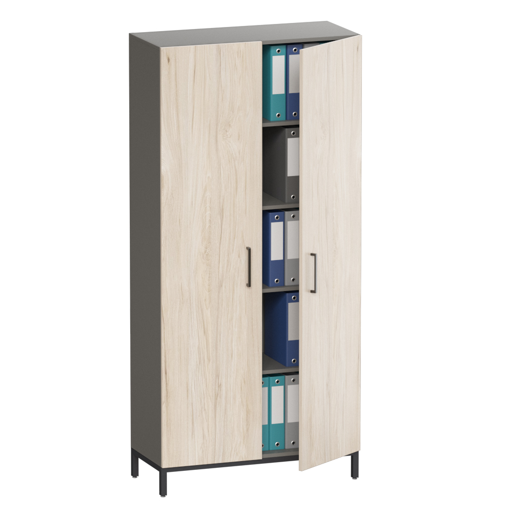 Вместительный шкаф с пятью рядами полок из которых 3 открыты. Простая конструкция с гармоничным сочетанием декоров зрительно не перегружает пространство и позволяет эффективно использовать каждый дюйм офиса. Современный дизайн дополняют металлические ручки на фасадах...