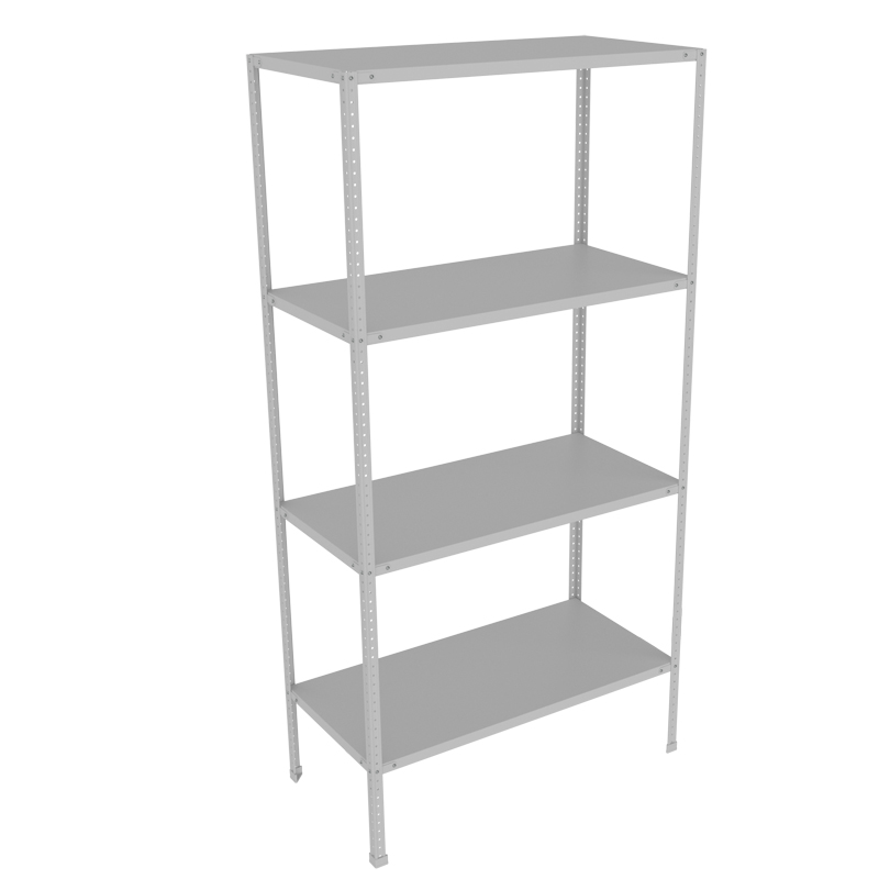 Стойки стеллажа изготавливаются из листовой углеродистой стали толщиной 1,2 мм и усиливаются с помощью углового профиля для большей устойчивости конструкции.