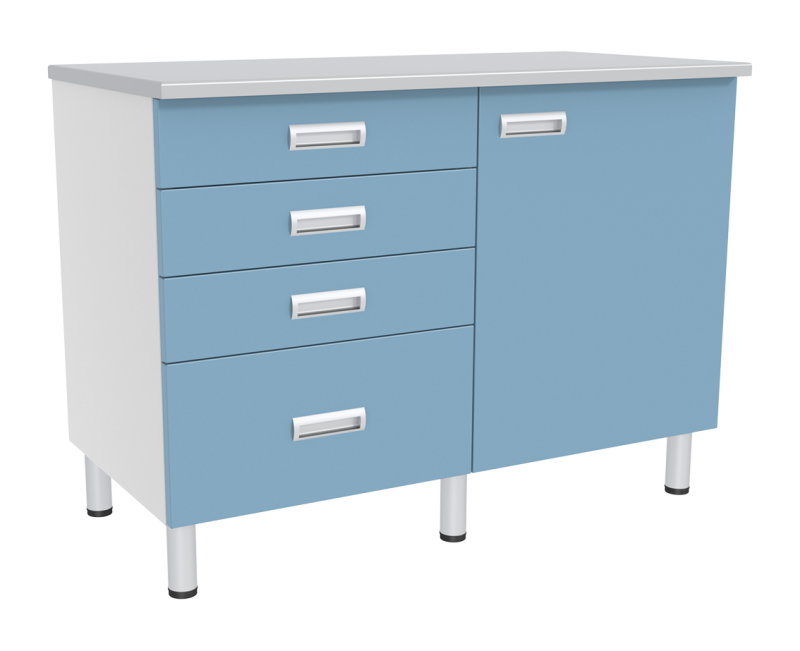 Наименование по Регистрационному удостоверению:Стол лабораторный двухтумбовый с дверкой и ящиками СЛ-04-«МСК» (код СЛ-04-222)