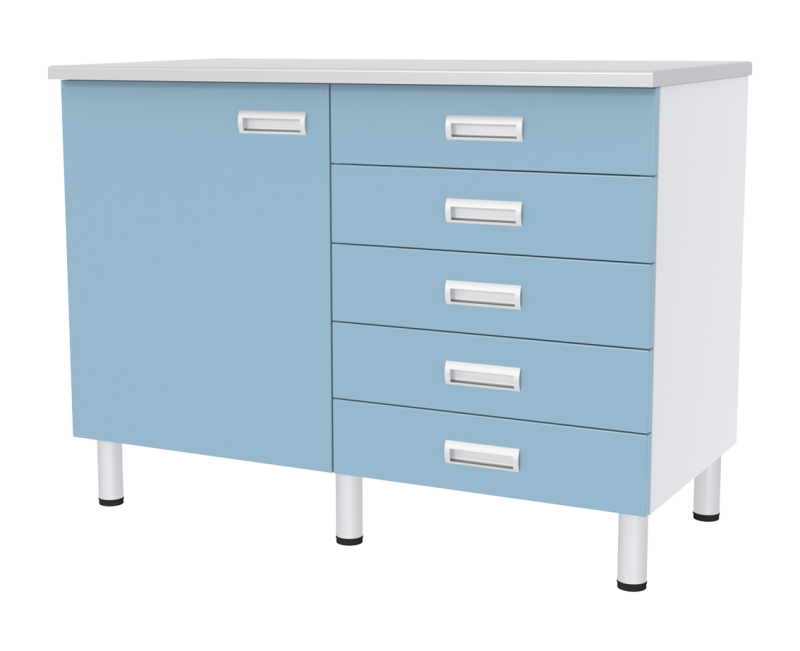Наименование по Регистрационному удостоверению:Стол лабораторный двухтумбовый с дверью и ящиками СЛ-04-«МСК» (код СЛ-04-215)