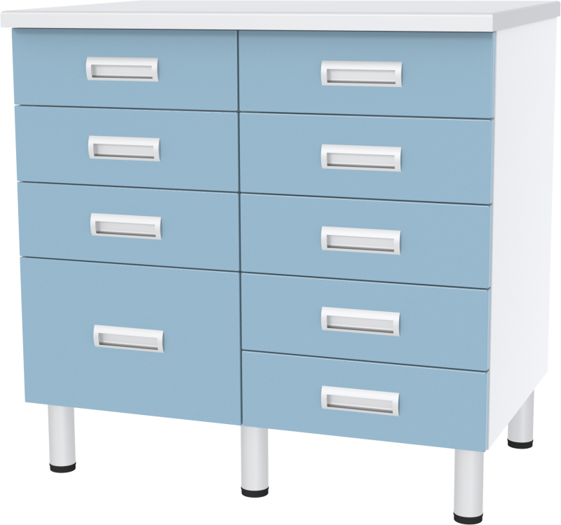 Цвета дверки и ящиков: белый, зеленый, голубой.