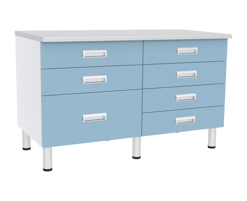 Стол лабораторный двухтумбовый с 7 ящиками, предназначен для организации рабочего места лаборанта, размещения оборудования и приборов, проведения химических и физических исследований. Стол имеет жесткую модульную сборно-разборную конструкцию, изготовленную из листовой стали толщиной 0,8...