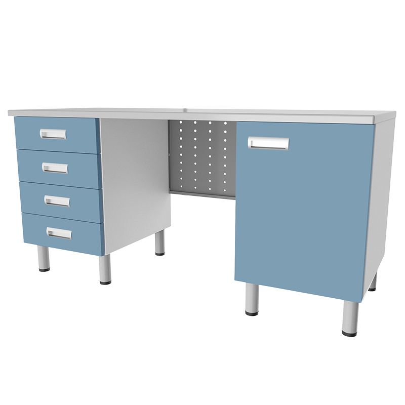 Стол лабораторный с двумя тумбами, дверками и полкой, предназначен для организации рабочего места лаборанта, размещения оборудования и приборов, проведения химических и физических исследований. Стол имеет жесткую модульную сборно-разборную конструкцию, изготовленную из листовой стали...