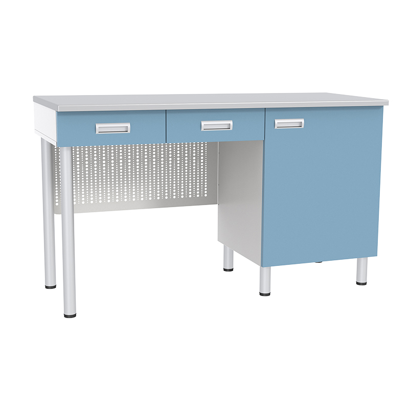 Стол лабораторный с тумбой, дверкой, полкой и ящиком, предназначен для организации рабочего места лаборанта, размещения оборудования и приборов, проведения химических и физических исследований.