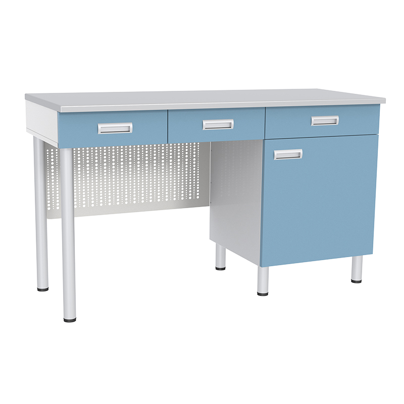 Стол лабораторный с тумбой, дверкой, полкой и ящиком, предназначен для организации рабочего места лаборанта, размещения оборудования и приборов, проведения химических и физических исследований. Стол имеет жесткую модульную сборно-разборную конструкцию, изготовленную из листовой стали...