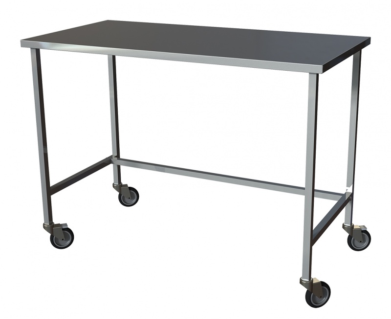 Изготовлен полностью из нержавеющей стали, устойчивой к регулярной обработке дезинфицирующими и моющими средствами. Каркас из нержавеющей стальной трубы квадратного сечения. Столешница из листовой нержавеющей стали. Колеса поворотные, самоориентирующиеся, ∅100 мм, два...