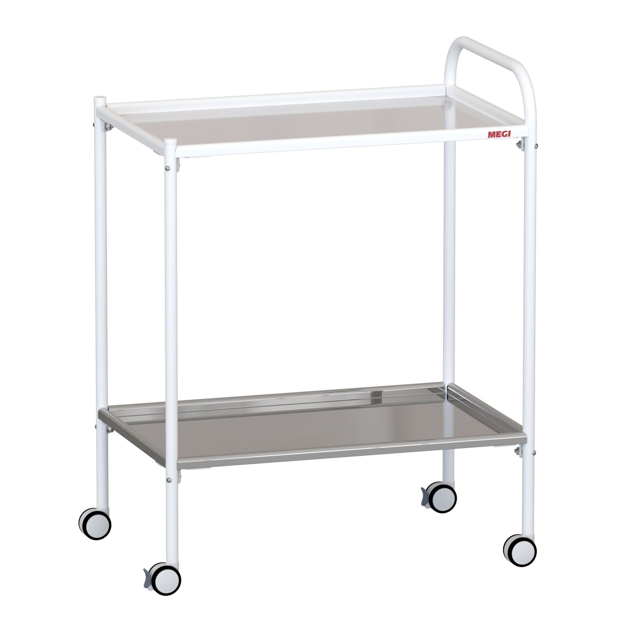Наименование по Регистрационному удостоверению:Столик процедурный передвижной металлический с двумя полками (стеклянной и из нержавеющей стали) СПп-01-МСК(501-02) по ТУ 9451-004-52962725-2001