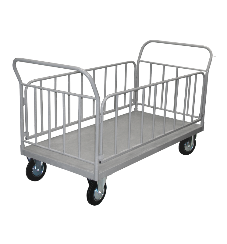 Ручки для перемещения тележки и съемные боковые ограждения изготовлены из стальной трубы круглого сечения. Высота ограждения - 510 мм.