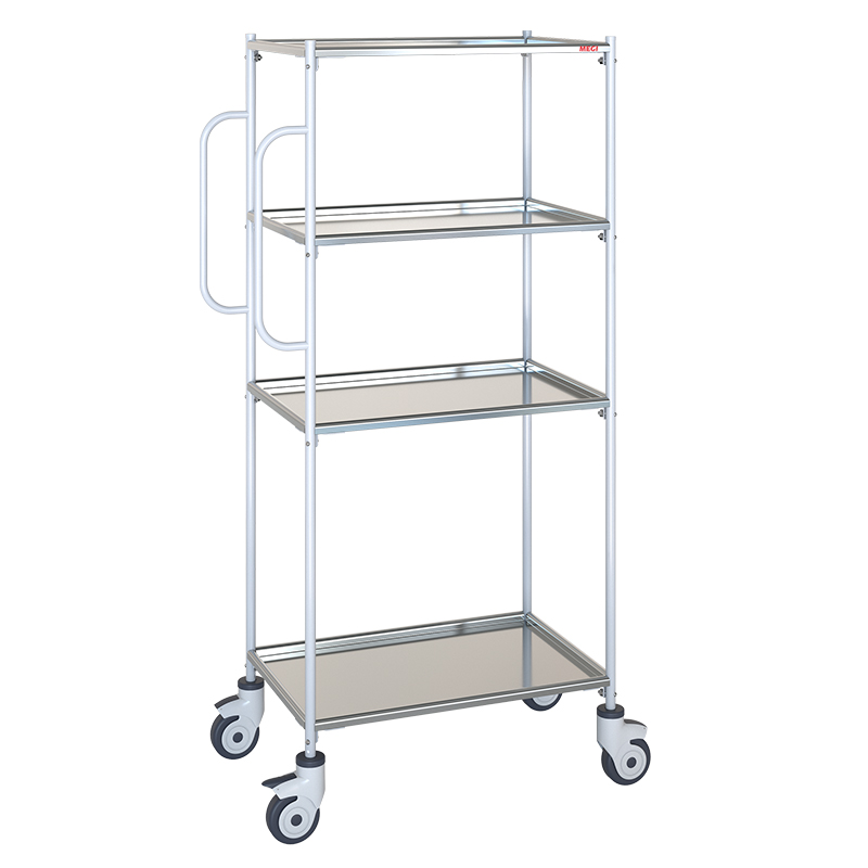 Каркас изготовлен из тонкостенной стальной трубы с нанесением экологически чистого полимерно-порошкового покрытия, устойчивого к дезинфицирующим средствам. Полки выполнены из нержавеющей стали. Колеса поворотные, самоориентирующиеся, ∅100 мм, с ободом из...
