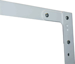 На этапе сборки применяется для присоединения верхней и нижней полки к стойкам. Присоединение уголка с полкой и стойкой осуществляется с помощью винтов и гаек (3 винта и 3 гайки для установки одного уголка)